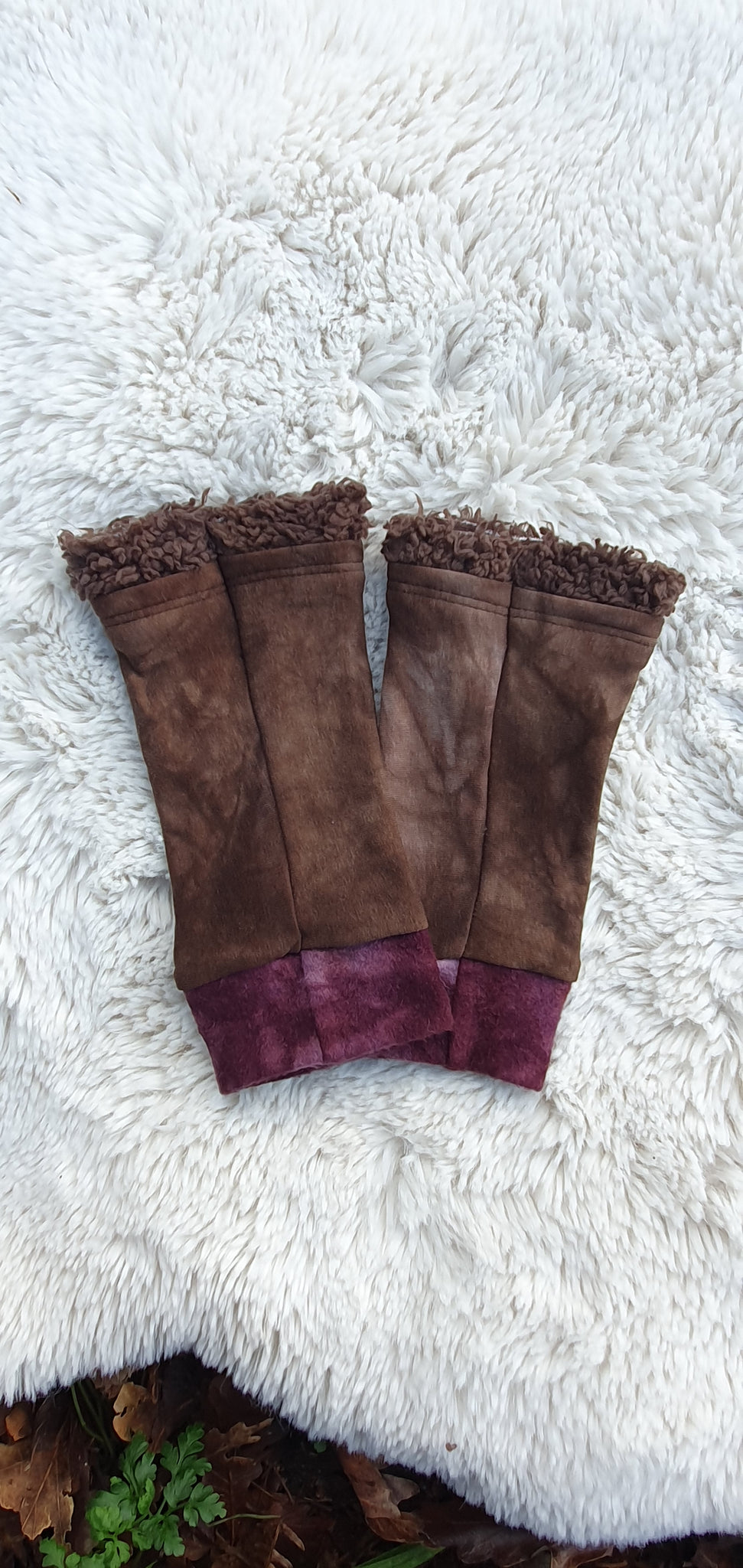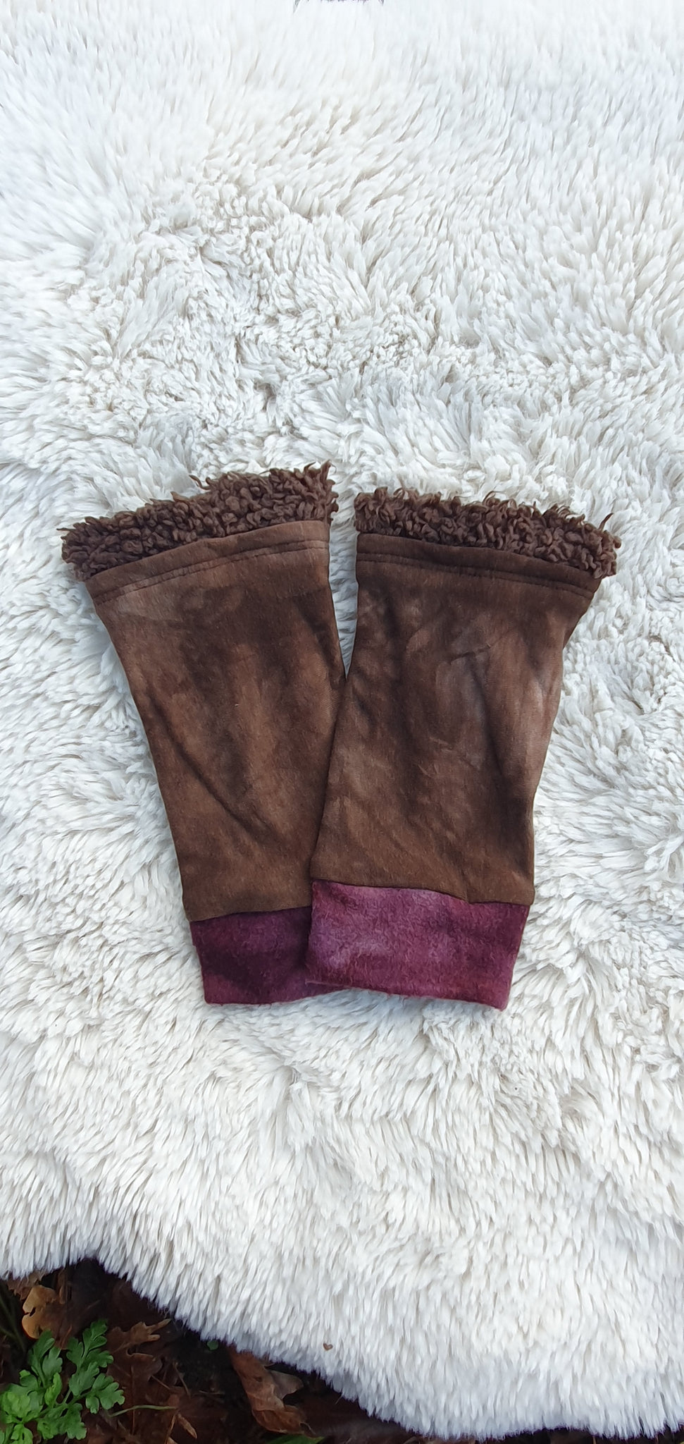 Handdyed in dark brown (cotton sherpa), brazil nut with deep burgandy / black band.